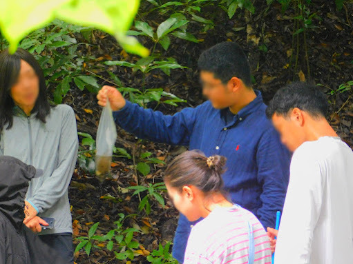 色々な種類の生き物が見られ、駒場キャンパスの自然の豊かさを存分に体験できるツアーとなりました。特に子供たちに人気だったのは、生まれたてのヒバカリの赤ちゃんでした。また、朽木を割って、都市部では貴重になった昆虫たちを観察することもできました。